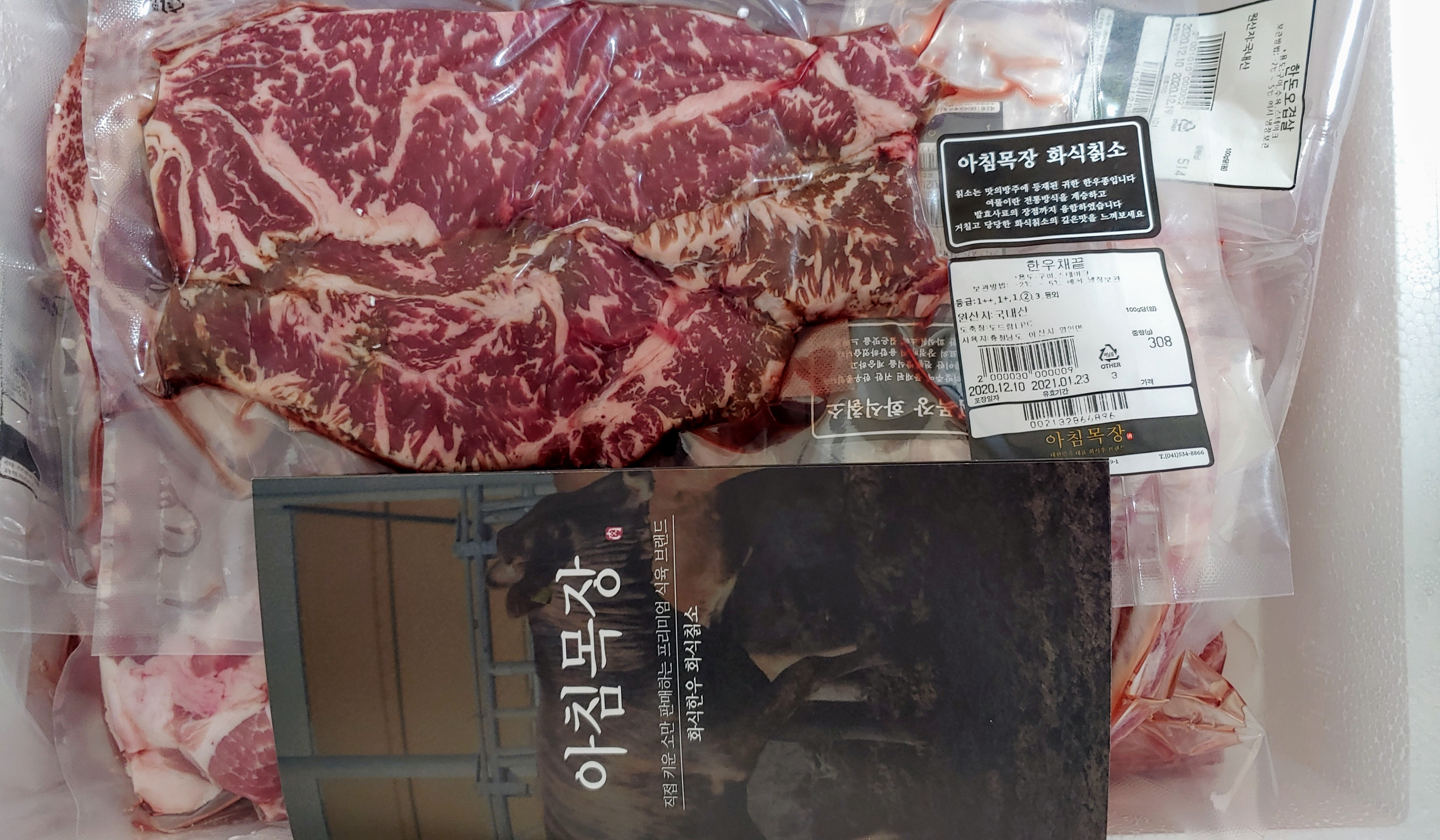 아침목장은 충남 아산에 위치한 프리미엄 식육 브랜드. 직접 키운 소고기와 한돈 돼지고기, 그리고 직접 만든 특제 양념으로 재운 양념고기 등을 판매한다. 처음엔 이 집의 양념 한우 소불고기가 너무 맛있어서 맛을 들였는데, 취급하는 돼지고기도 사 봤더니 값도 싸고 품질도 좋았다. 그래서 이 집의 시그니처라고 할 수 있는 화식칡소도 시도해 본 것.