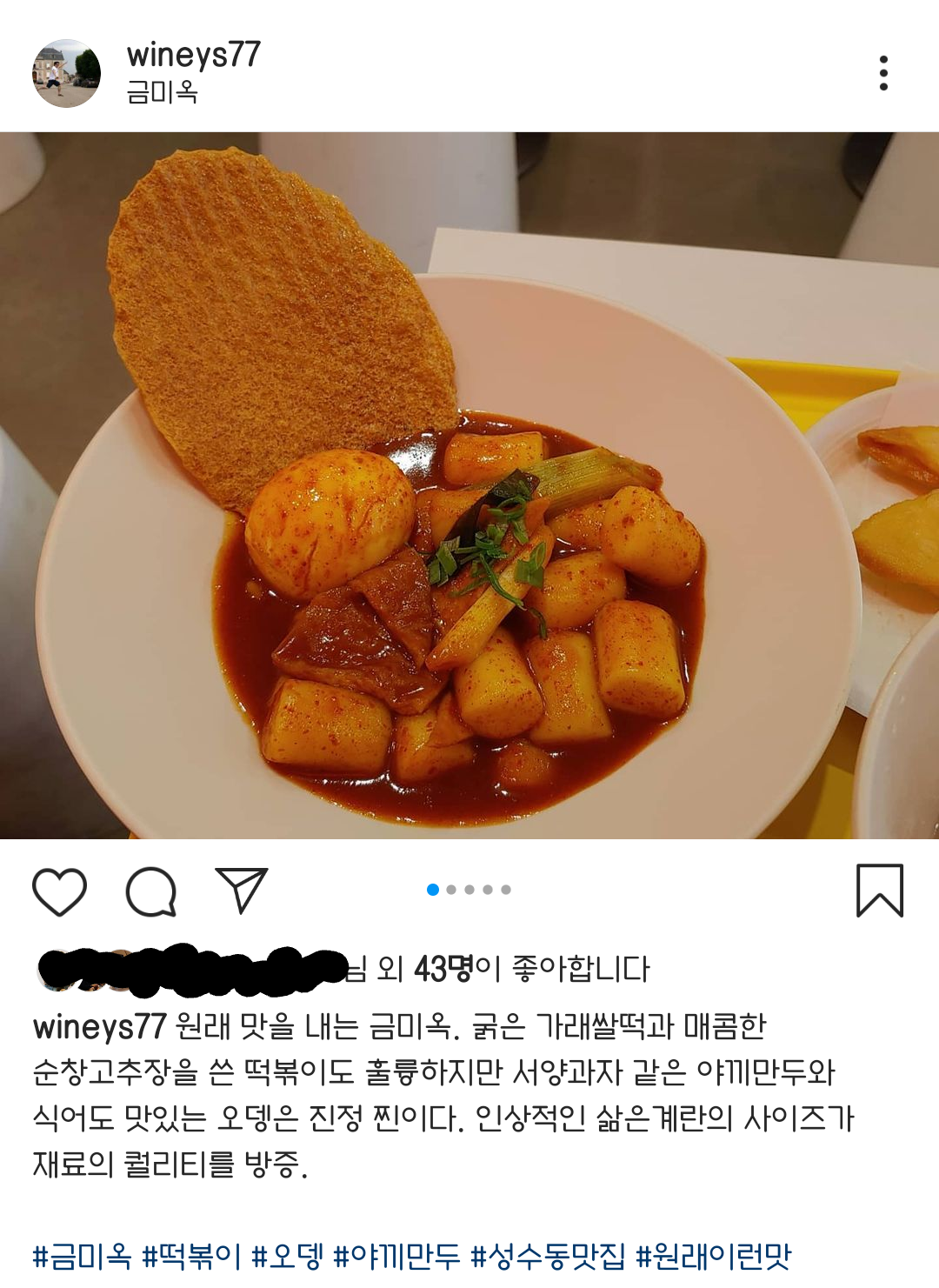 금미옥 떡볶이는 한달 전에 성수동에서 처음 먹어봤는데 진짜 기본기 좋은 쌀떡볶이 맛이었다. 게다가 미로식당과 미미네는 밀떡이기 때문에 비어 있는 퍼즐이 채워지는 느낌. 떡의 굵기는 일반 떡볶이 떡보다는 살짝 굵고 가래떡보다는 살짝 얇은데, 두께가 2-3cm 정도라 딱 먹기 좋은 사이즈다. 쌀떡의 쫄깃함을 제대로 즐길 수 있는 황금비율이랄까.