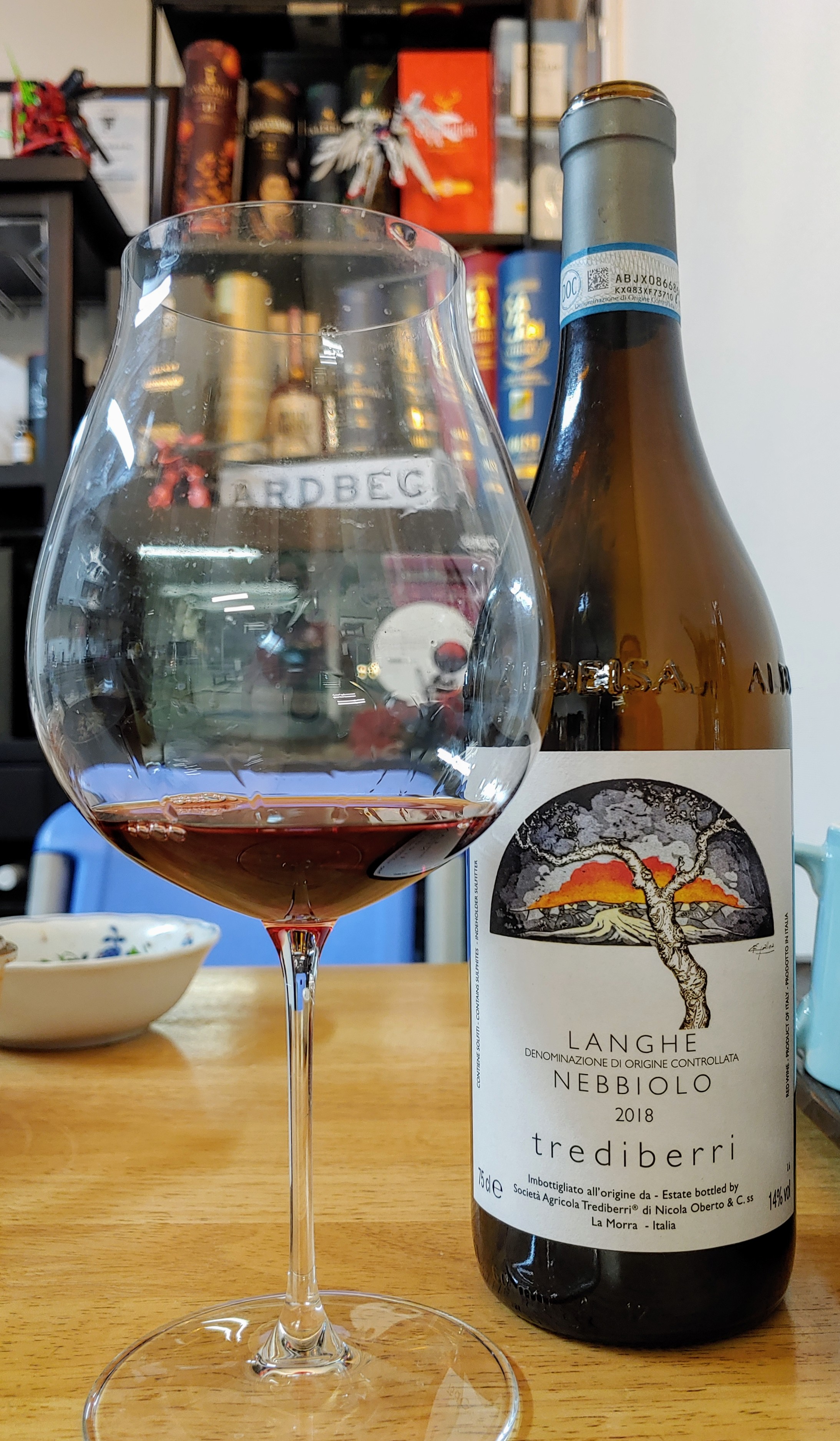 와인은 반 병 남은 트레디베리 랑게 네비올로(Trediberri Langhe Nebbiolo)를 곁들였습니다. 오늘은 리델 베리타스 뉴 월드 피노 누아 잔을 사용했는데, 이 잔이 요 와인의 매력을 가장 잘 표현하는 것 같네요. 전날 사용했던 잔은 잘토 피노 누아와 마크 토마스 코어 익스프레션. 다 좋은 잔들이지만 와인과의 궁합이 있는 거겠죠.