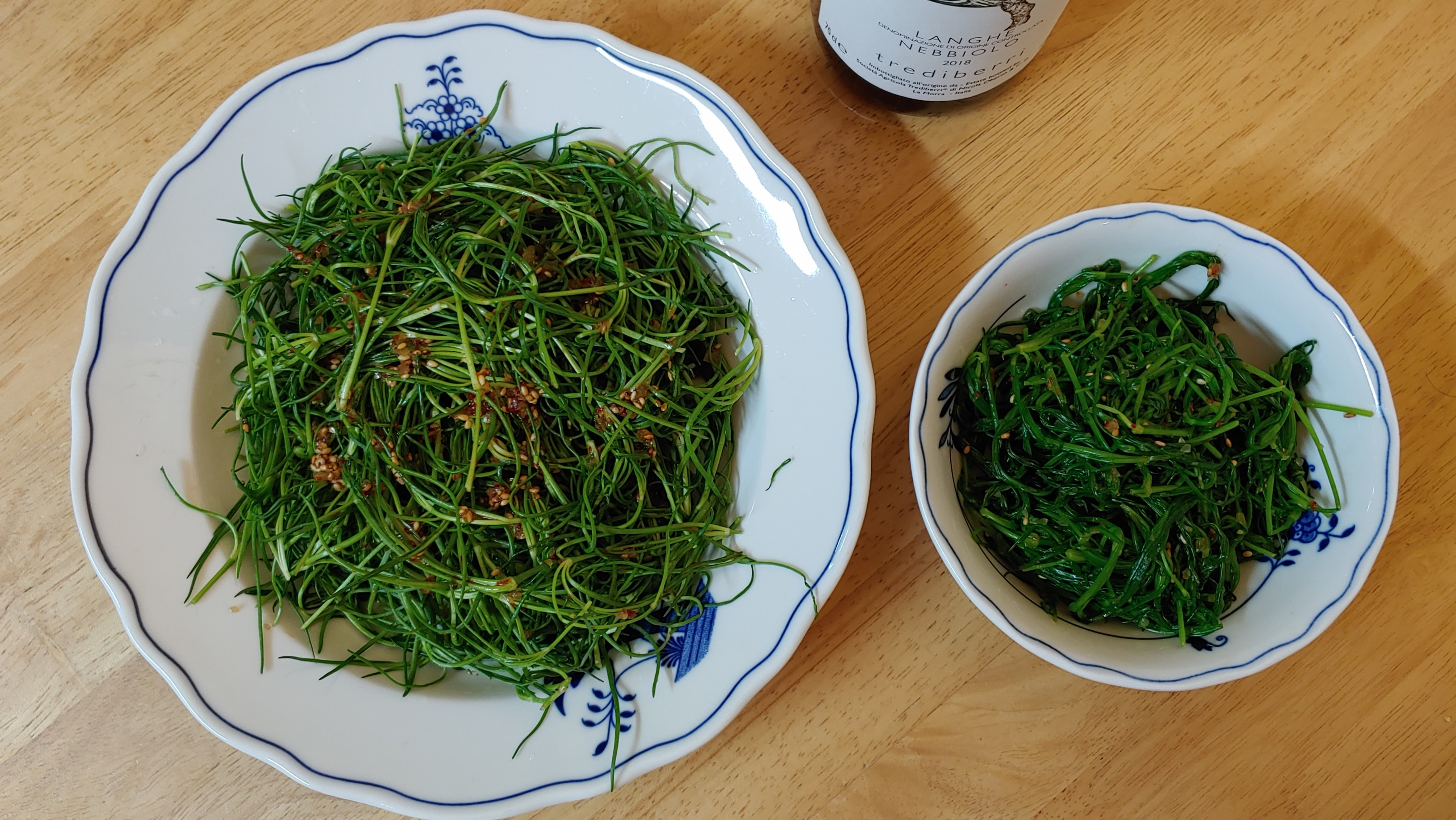 그리고 간만에 세발나물을 무쳐 봤습니다. 왠지 파릇한 나물이 땡기더라고요. 세발나물은 갯나물이라고도 하는데 염전 등 바다 근처 소금기 있는 땅에서 잘 자랍니다. 그래서인지 나물 자체에 약간 짭짜름한 맛이 있어 간을 강하게 할 필요가 없어요. 예전엔 데치지 않고 겉절이 형식으로 먹었는데 오늘은 살짝 데쳐서 나물로도 해 봤습니다. 된장국을 끓여도 맛있다고 하니 다음엔 국도 시도해 봐야겠어요.