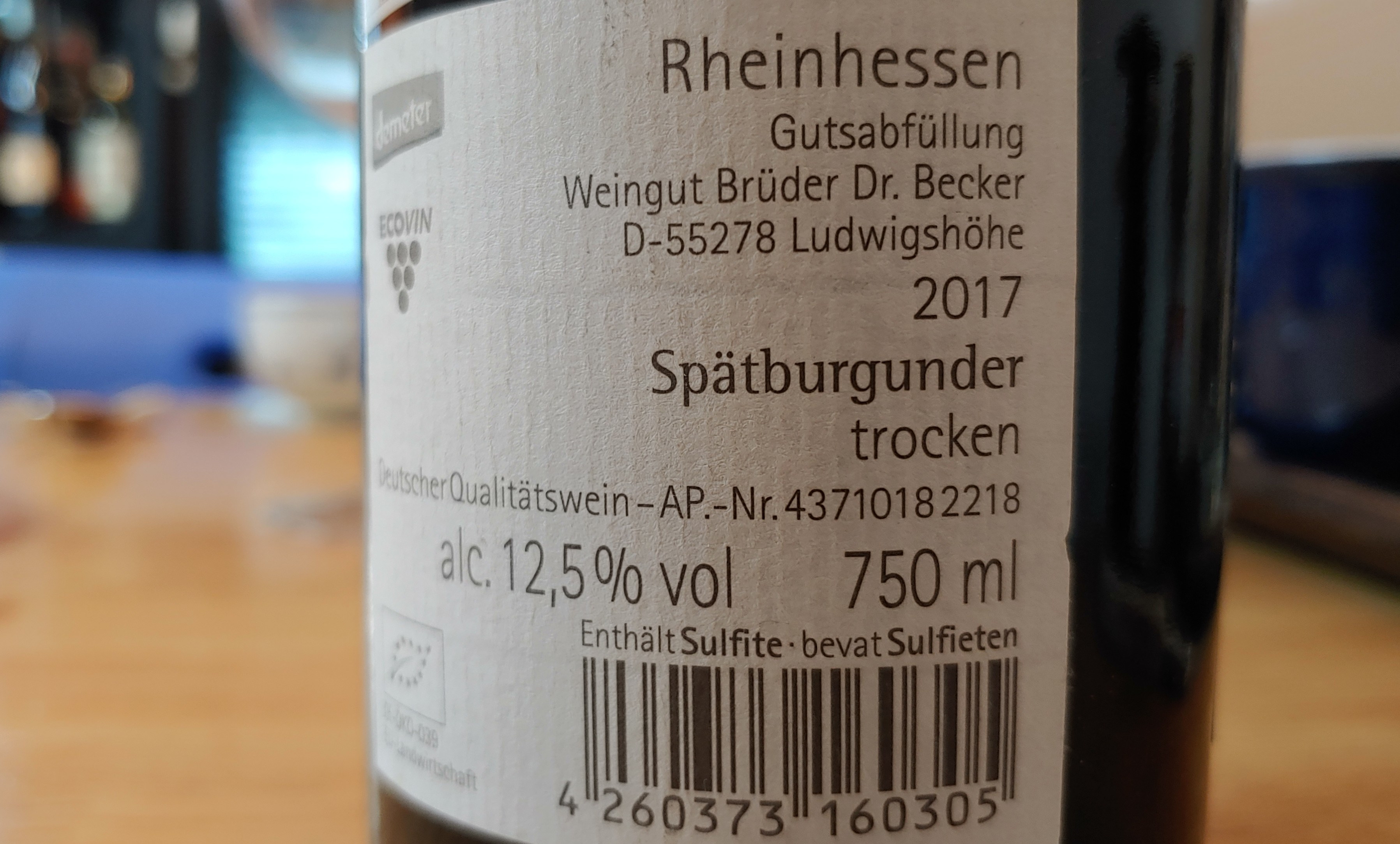 병목에 포도를 품은 독수리가 보인다. 독일을 대표하는 200 여 개 와이너리가 모여 있는 독일 우수 와인 생산자 협회(VDP, Verband deutscher Prädikatsweingüter)의 멤버라는 표시다.