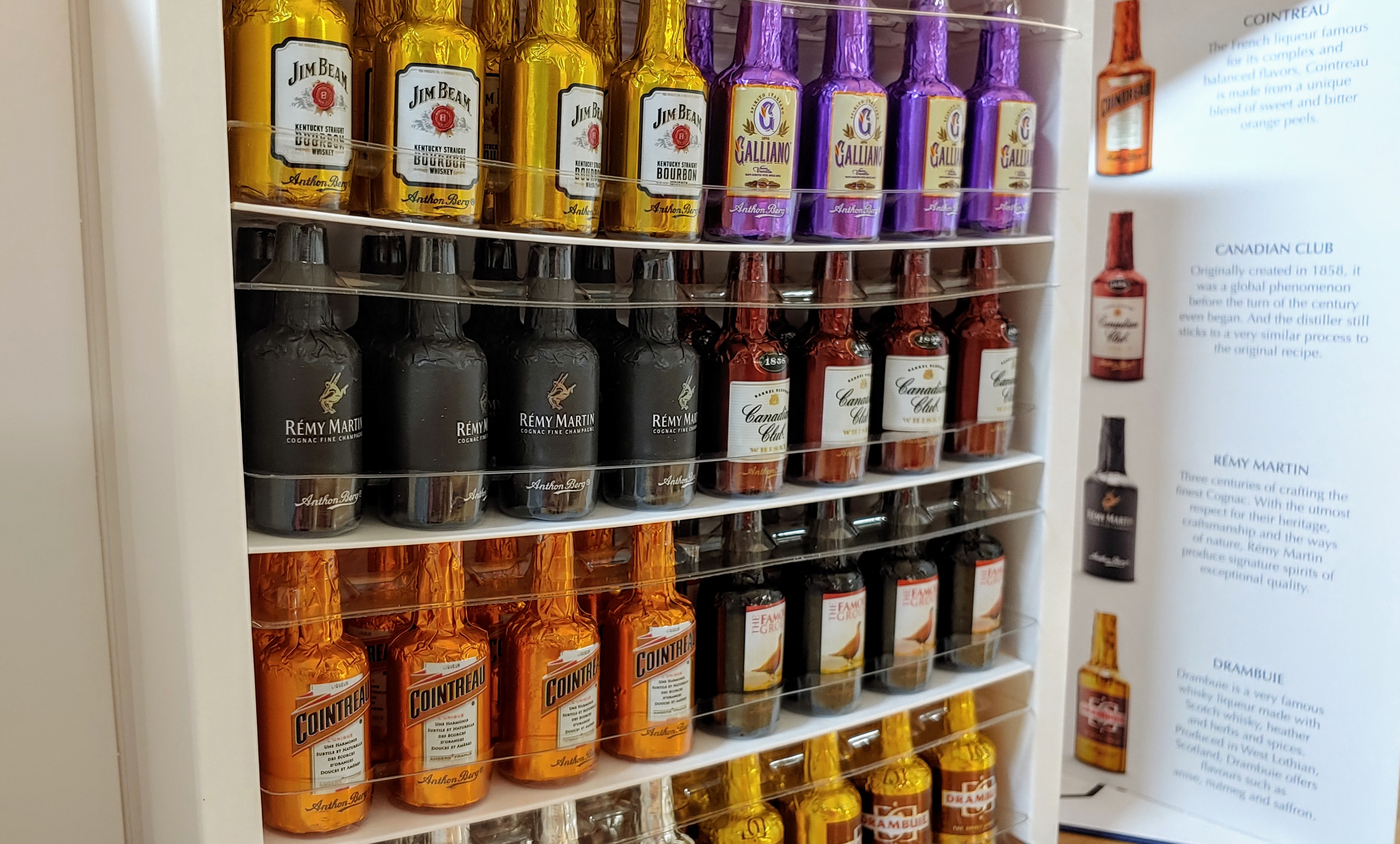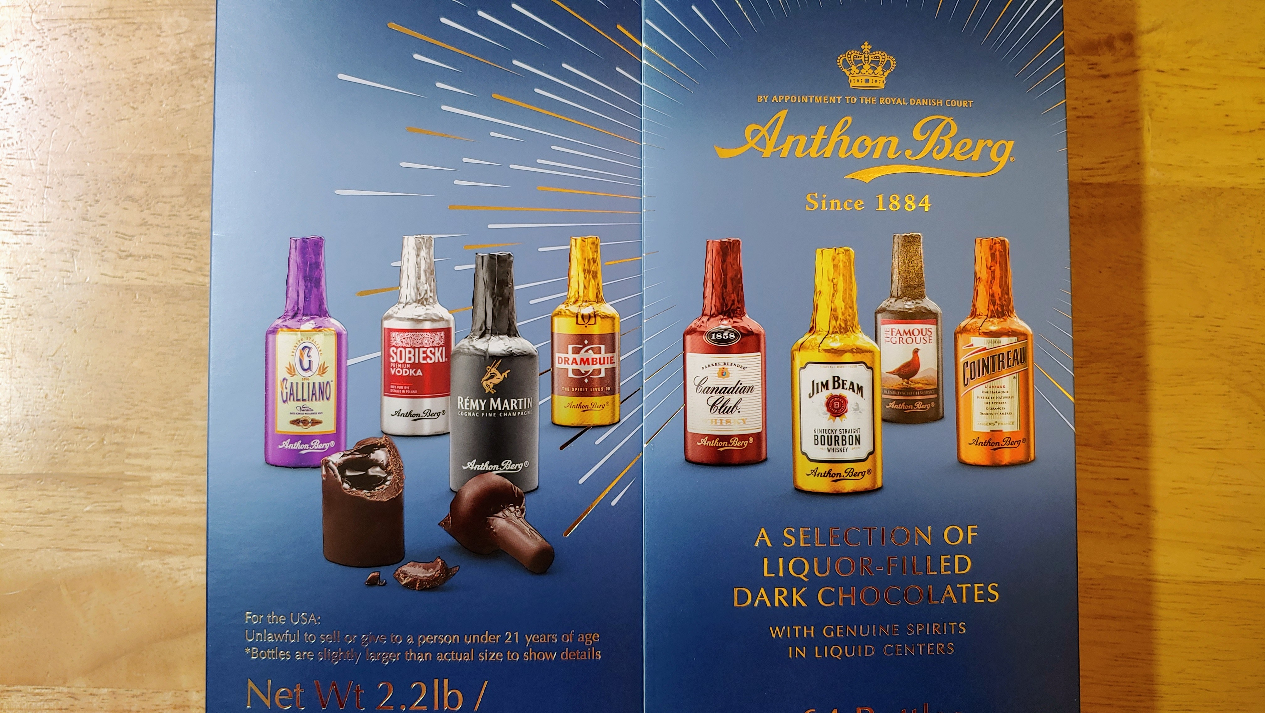 그런데 사실 이 초콜릿에 들어있는 주류는 위스키뿐만이 아니에요. 코냑, 보드카, 쿠앵트로, 드람뷔, 갈리아노 등 세계의 유명 주류 여덟 가지가 들어있습니다. 술의 함량도 상당하다고 해요. 술 약한 사람이 몇 개 집어먹으면 취할 수도 있다고 합니다. 그래서인지 미국 내에서는 21세 이하에게는 팔 수 없다고 박스에도 명기돼 있네요.