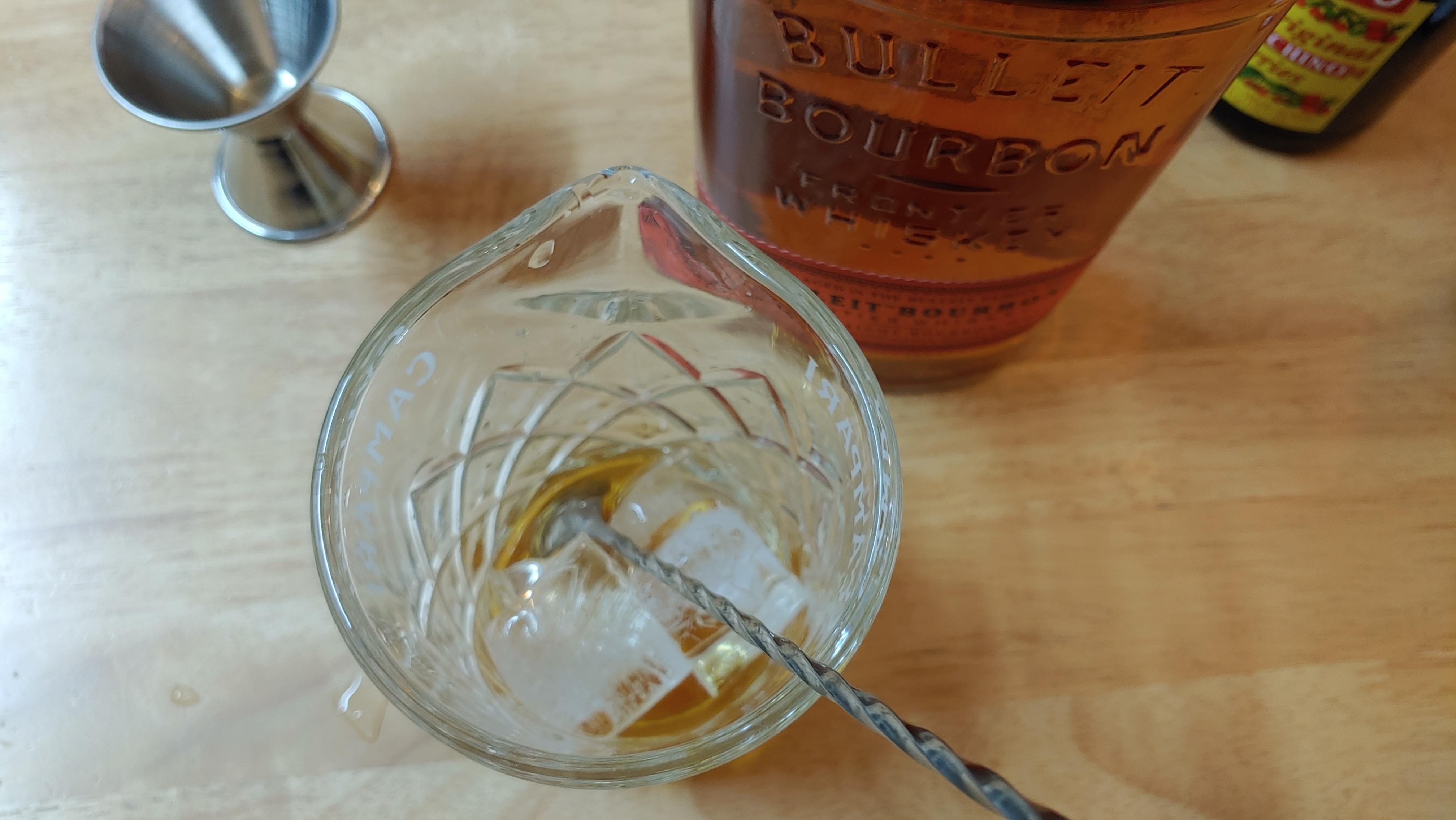 위스키는 불렛 버번(Bulleit Bourbon)을 썼다. 라이 위스키는 가지고 있는 게 없어서 이왕이면 라이(Rye, 호밀) 함량이 높은 걸 쓰고 싶었다.