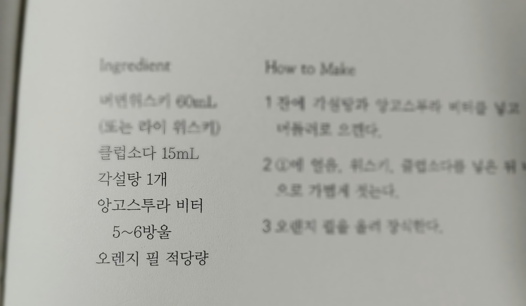 '앙고스투라 비터스 1 대시(Angostura Bitters 1 dash)'. 혹은 몇 방울...