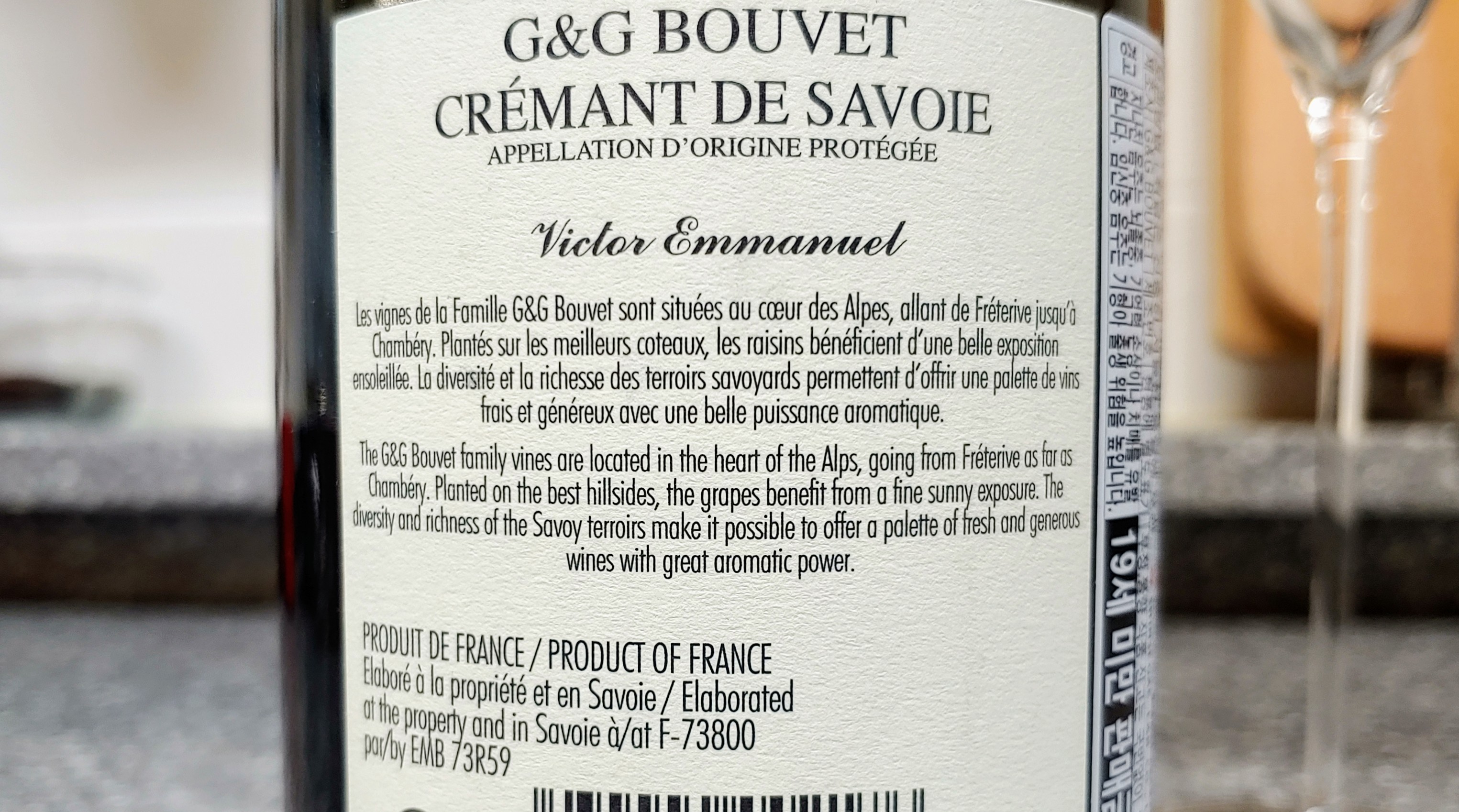빅토르 에마뉴엘 크레망 드 사부아(Victor Emmanuel Cremant de Savoie). 와인앤모어 12월 세일 리스트에 있던 와인인데 이제야 마신다. 한발 늦은 리뷰.