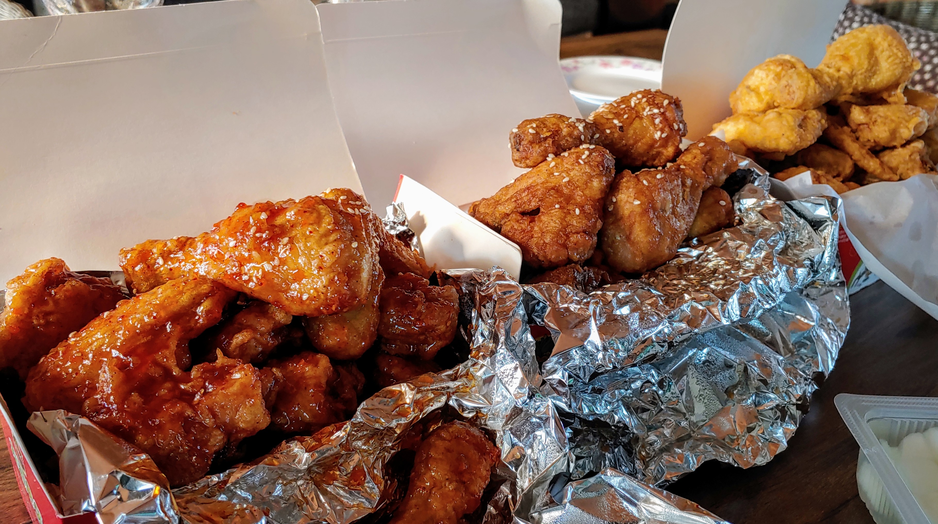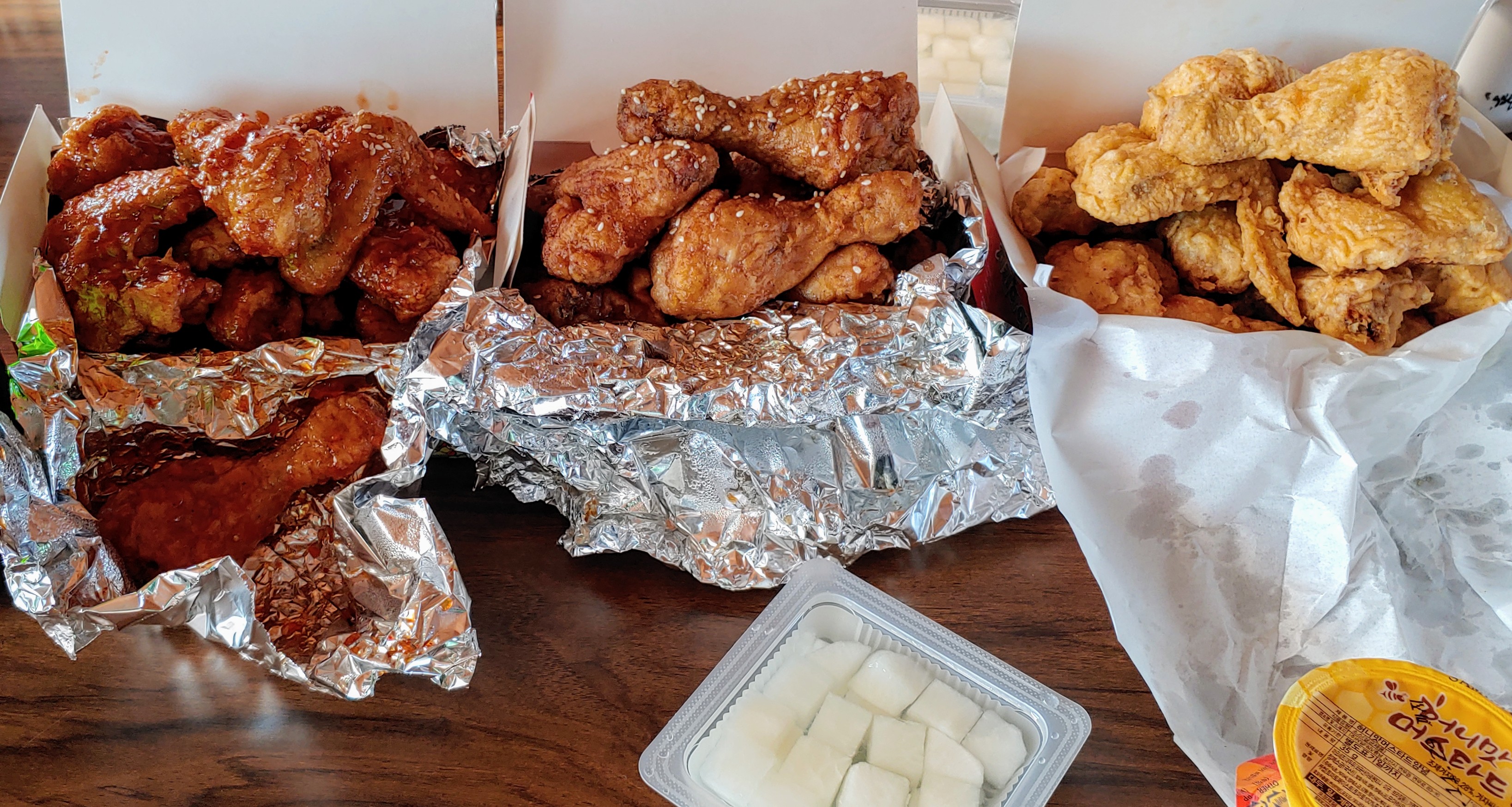 여수의 동네 치킨집인데 튀김옷이 과자처럼 바삭한 요즘 스타일이 아니라, 약간 전분틱(?)한 옛날 시장 스타일이다. 배달 거리가 제법 멀 텐데도 적당한 바삭함이 살아있어서 놀랐음. 핵꿀맛이다.