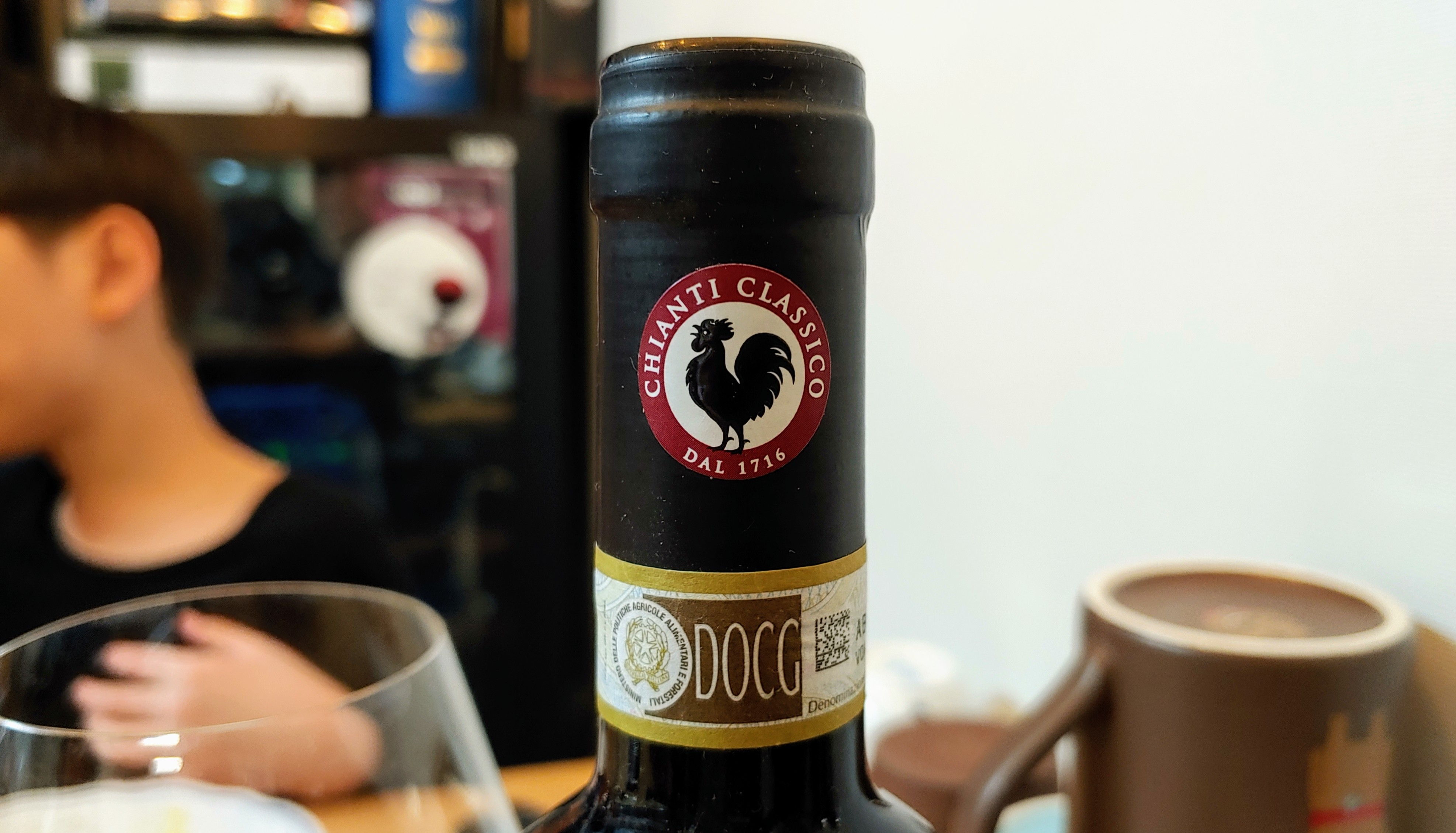 와인 한 잔 곁들이지 않을 수 없다. 모가지에 검은 수탉 로고가 있는 이 녀석으로 낙점.