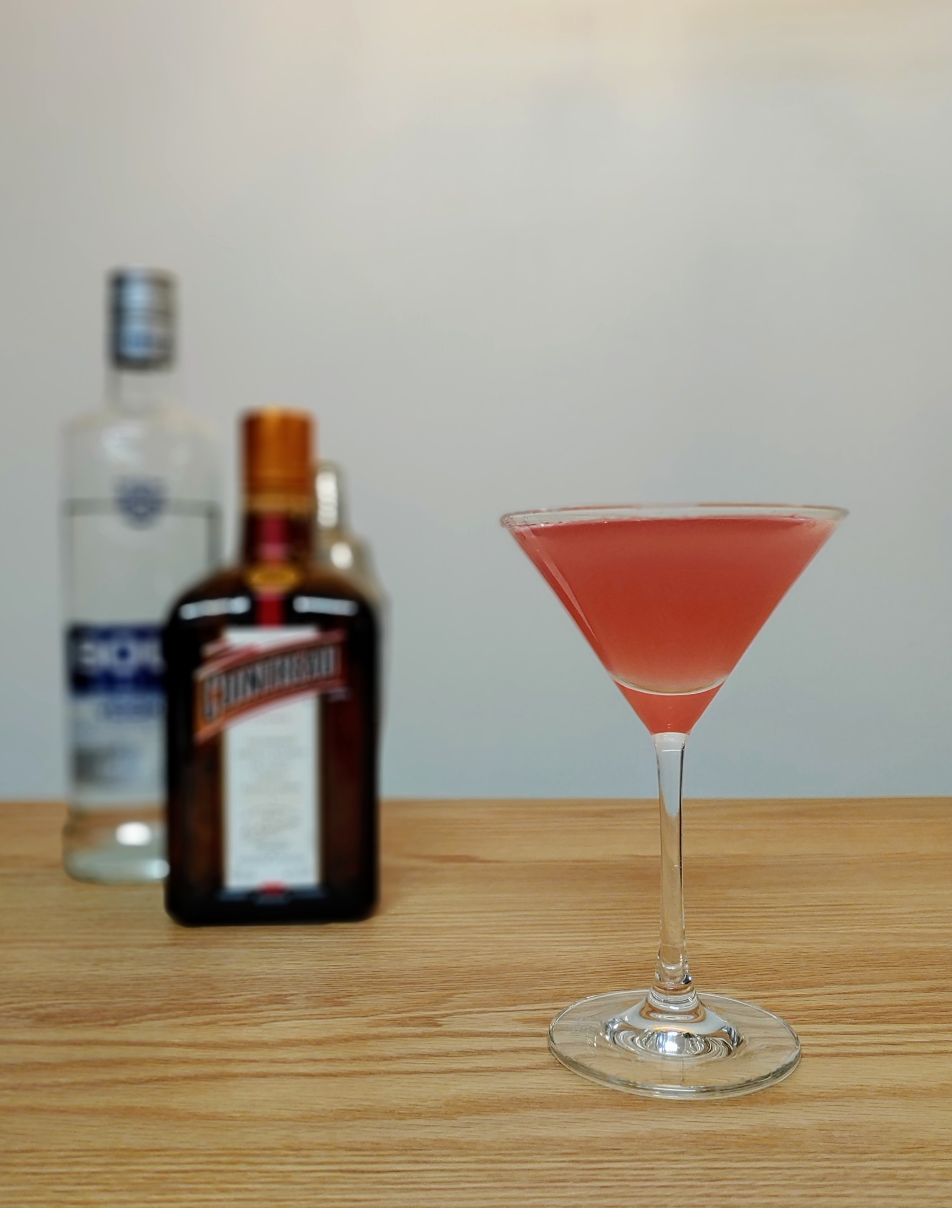 그런데, 사실 레시피를 살짝 바꿔서 만들었다. <오늘 집에서 칵테일 한 잔 어때?>라는 책의 레시피대로 재료의 함량을 늘린 것. 보드카는 45ml, 쿠앵트로, 라임 주스, 크랜베리 주스는 각 20ml를 썼다. 레몬 필은 생략.