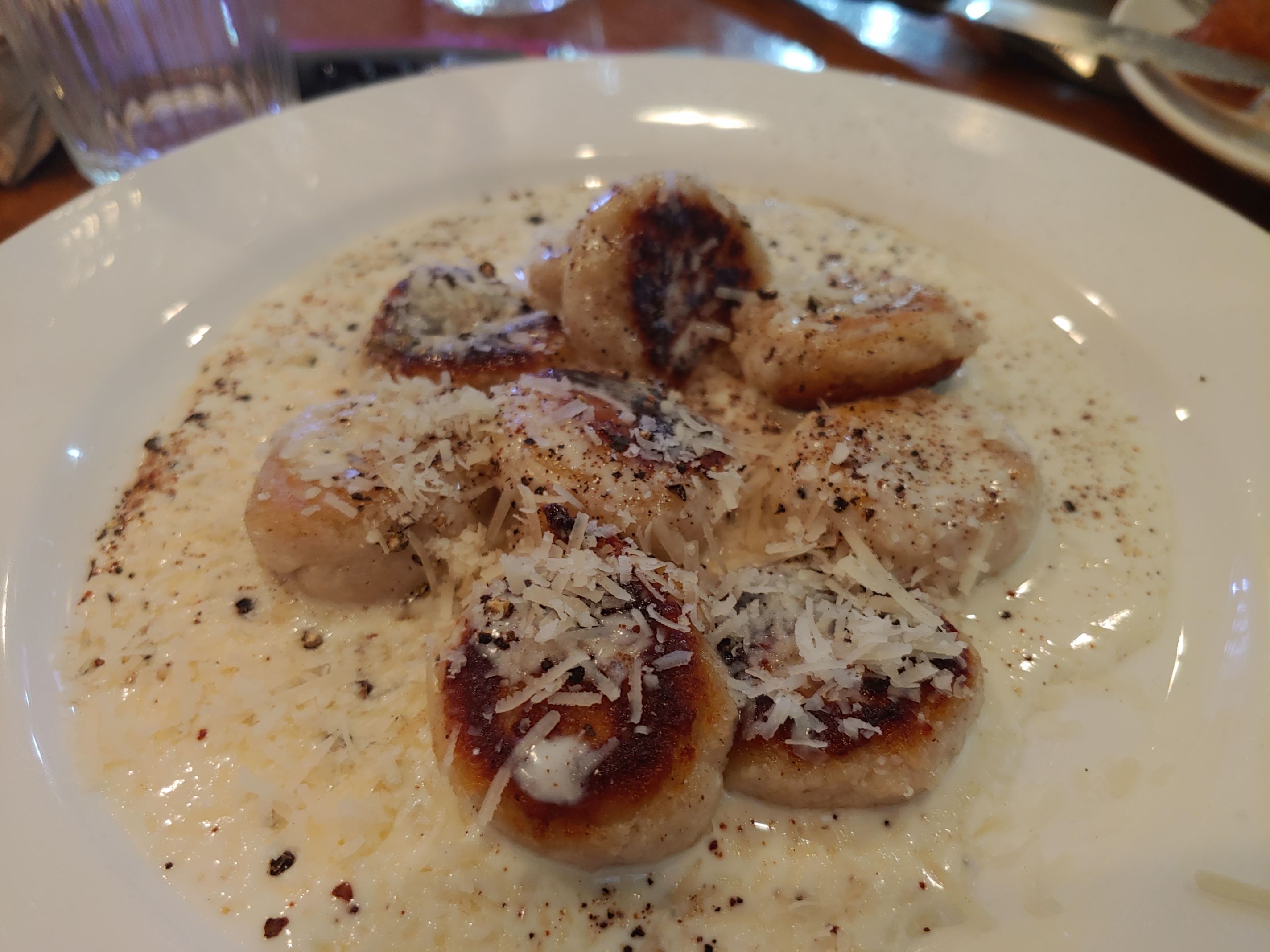 메밀과 감자를 이용한 구운 뇨끼. 겉바속촉 한 게 레알 좋아하는 맛이다. 이것만 따로 더 먹고 싶어ㅠㅠ