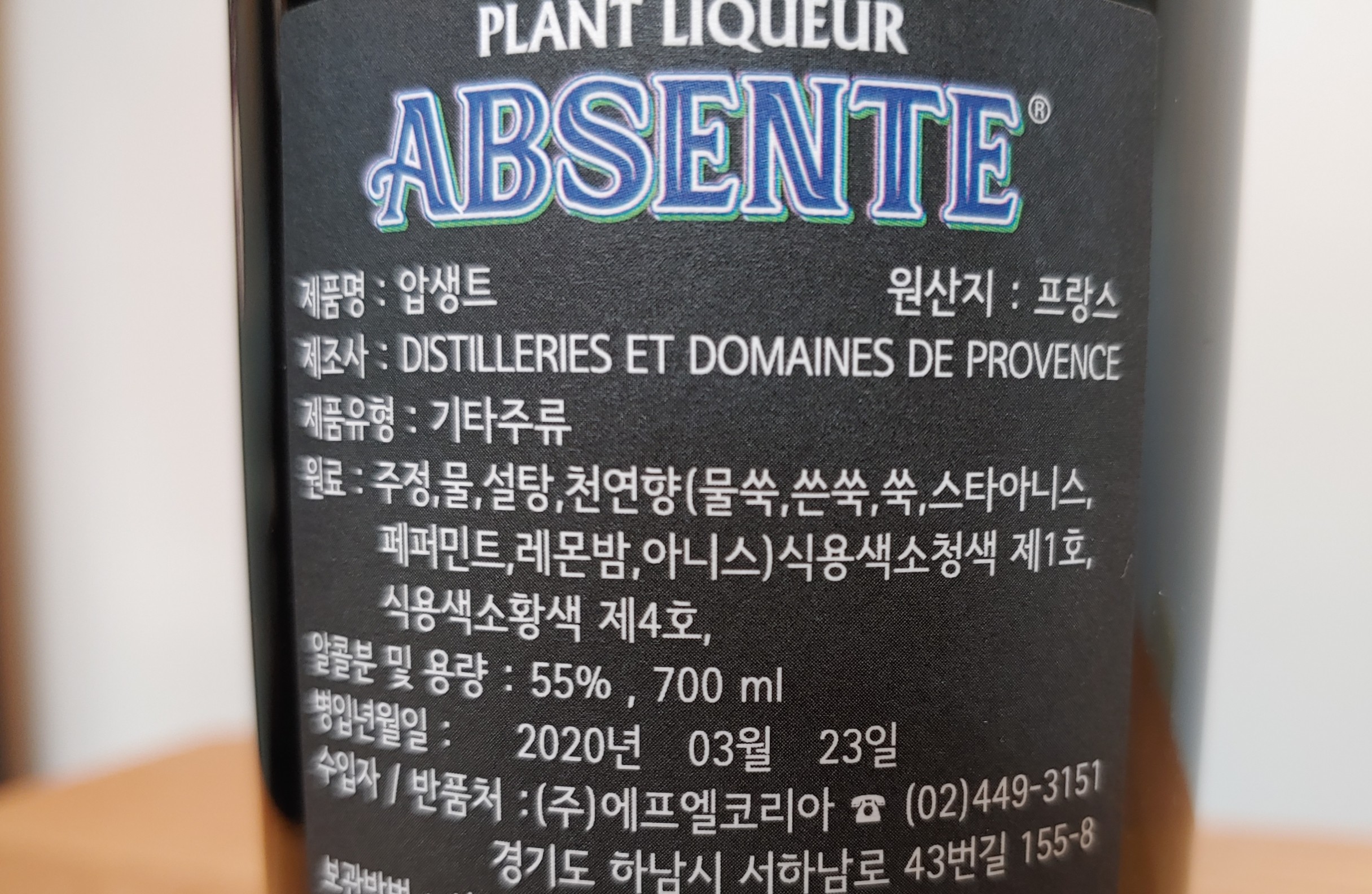 그런데 홈페이지에 소개된 레이블(좌)과 내가 산 보틀의 레이블(우)이 살짝 다르다. 홈페이지 레이블 상단에는 Absinthe라고 쓰여있는데, 내 보틀엔 Plant Liqueur라는 표현이 대신 들어가 있다. 뇌피셜이지만 아마 아직 압생트 생산 및 판매가 금지된 지역에 수출하기 위한 꼼수가 아닐까. (우리나라는 판매 금지가 풀린 것으로 알고 있지만...) '플랜트 리큐르(Plant Liqueur)'란 허브나 나무뿌리 등 식물을 원료로 한 리큐르를 말하는데, 과거 압생트 판매 금지 시절에 유사 압생트를 이런 식으로 표현했던 것 같다.