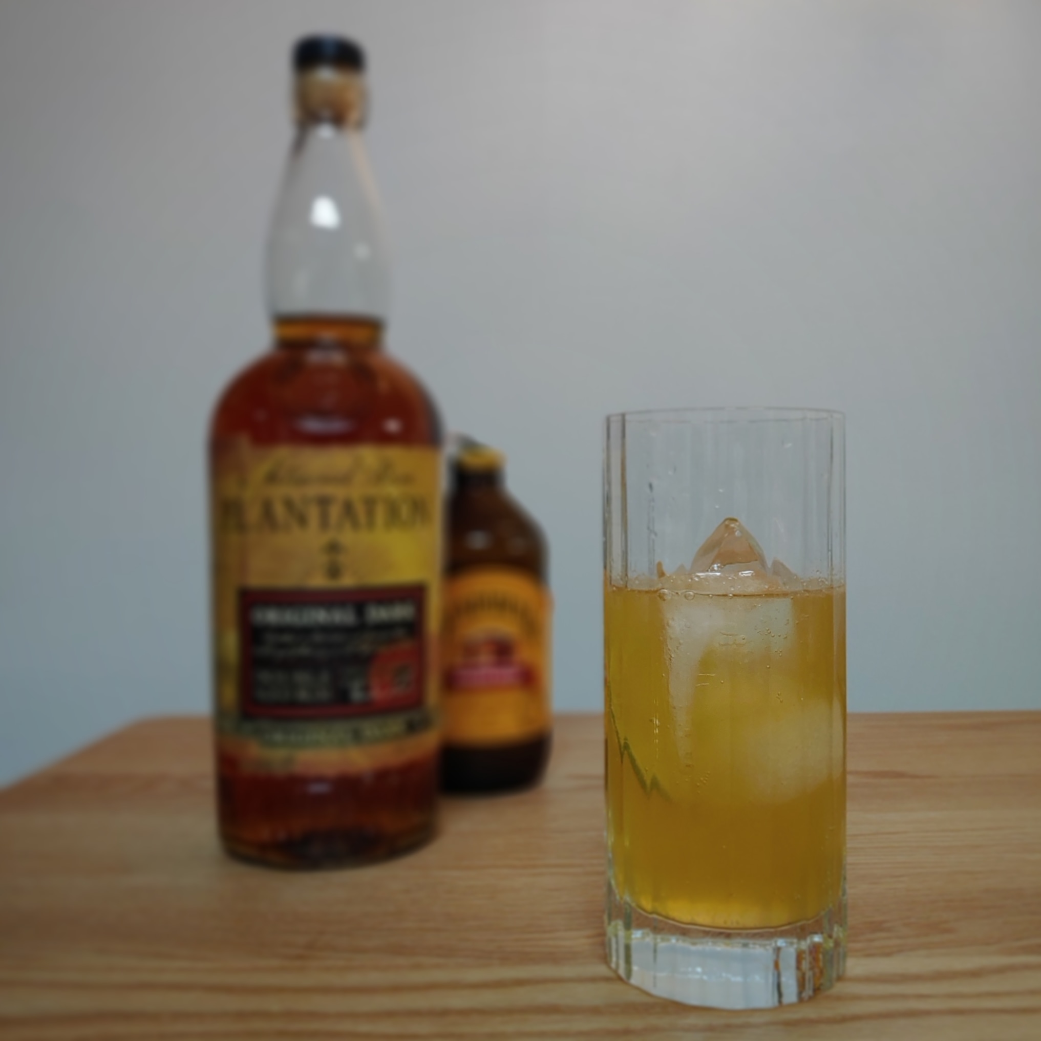 원래 고슬링스 블랙 실 럼(Goslings Black Seal Rum)이라는 특정 브랜드의 럼이 특정돼 있지만, 저 브랜드를 한국에서 본 적도 없거니와, 집에 럼을 종류 별로 갖춰 둘 수도 없는 노릇이니 그냥 집에 있는 플랜테이션 오리지널 다크 럼(Plantation Original Dark Rum)을 썼다. 레시피에서도 다른 다크 럼을 써도 무방하다고 되어 있고.