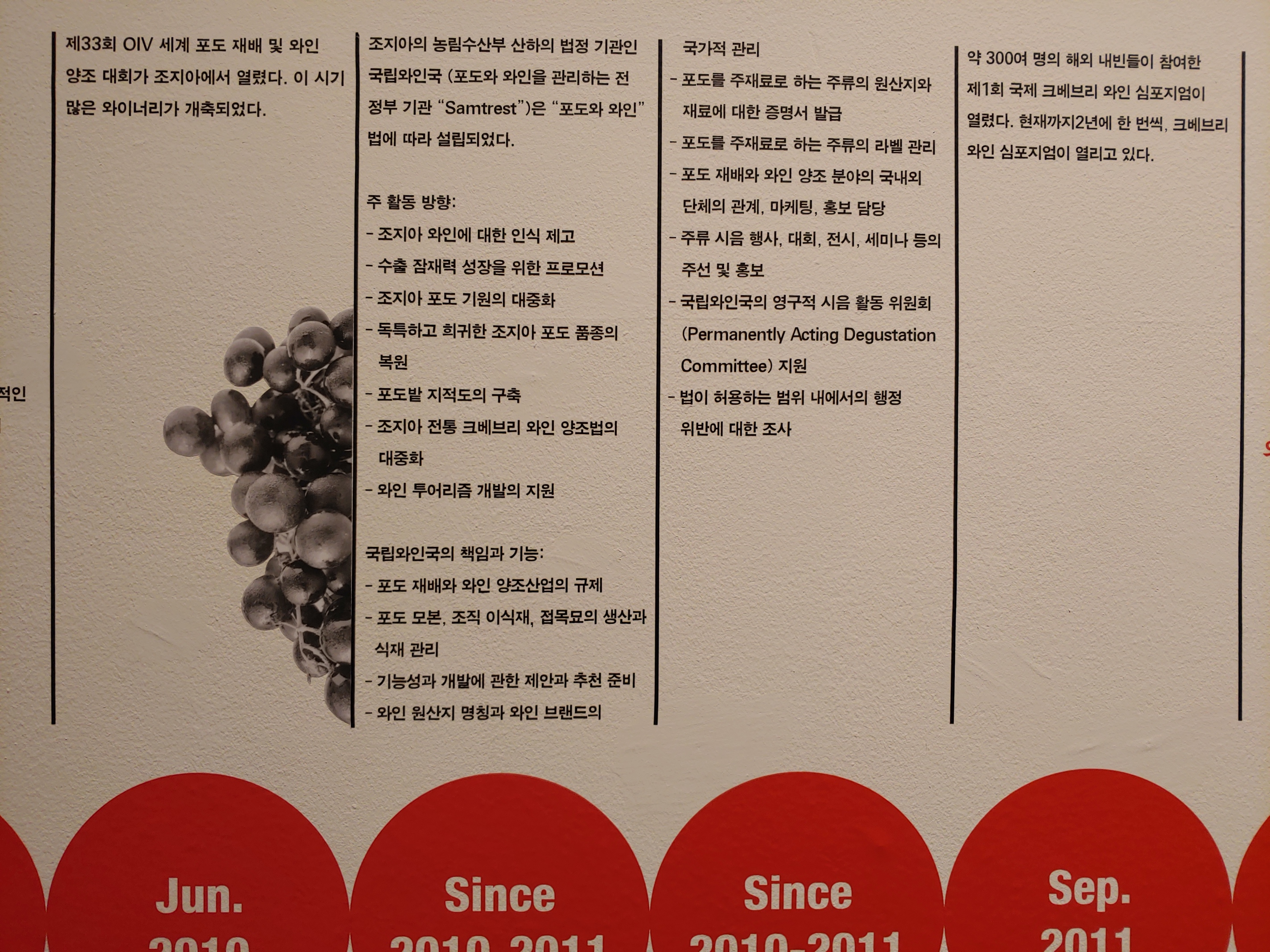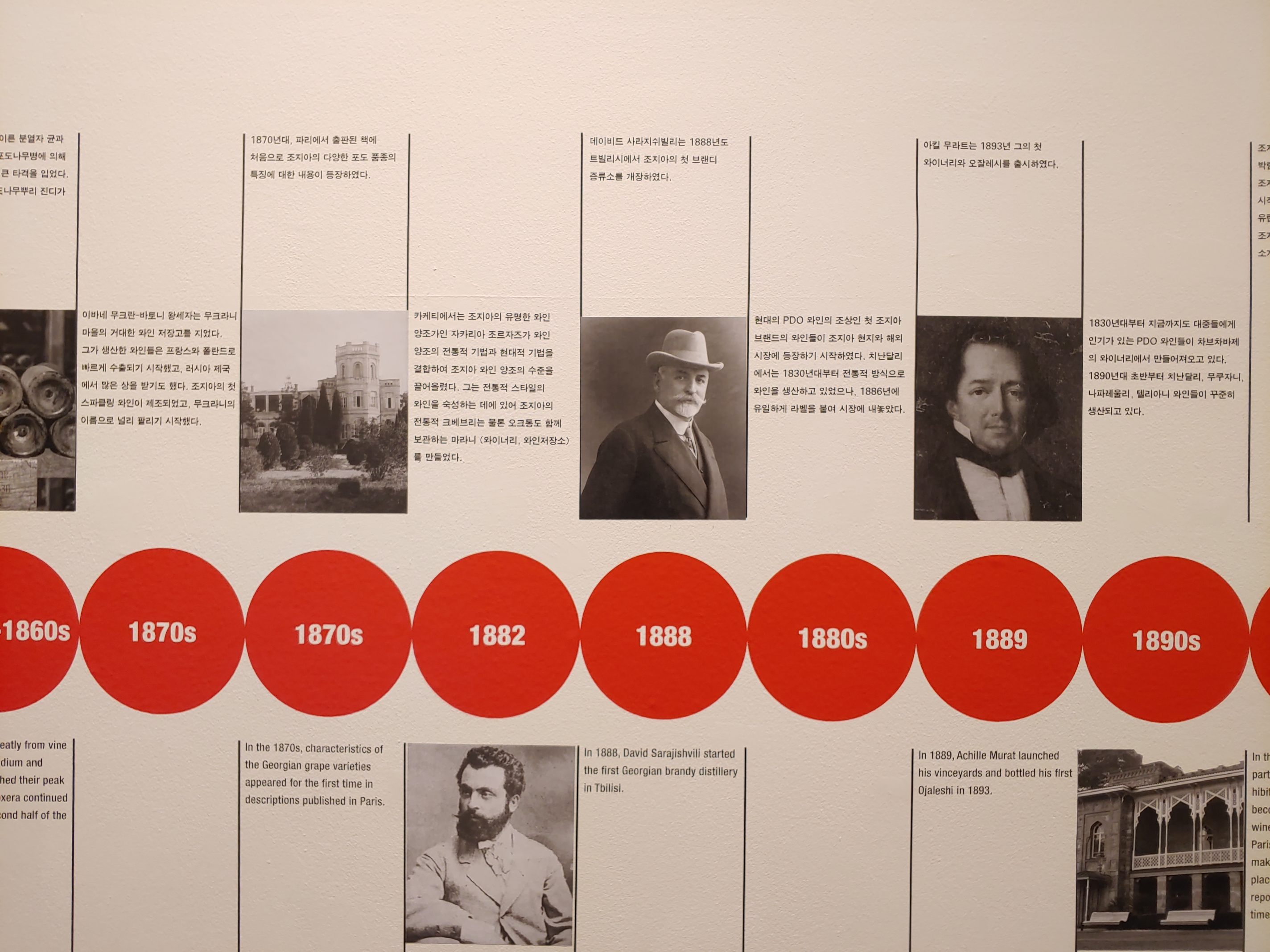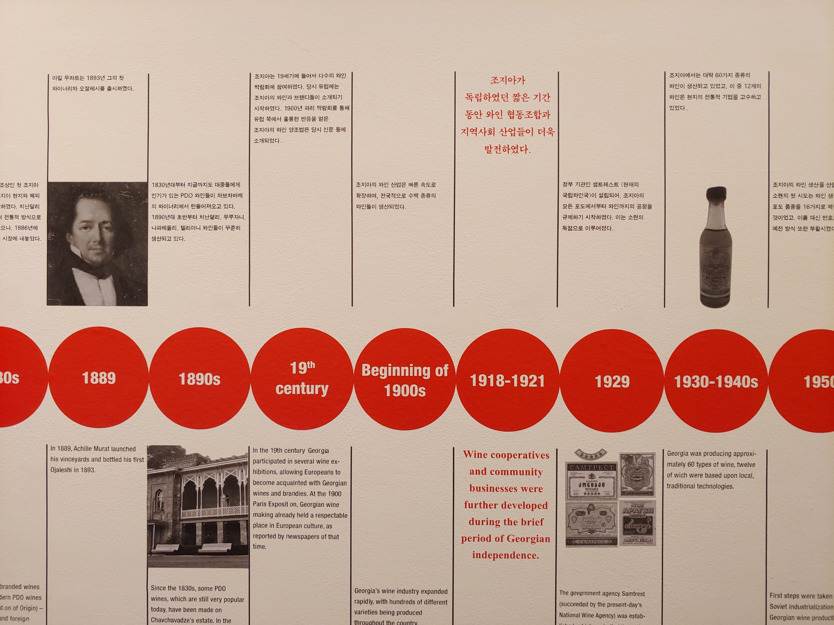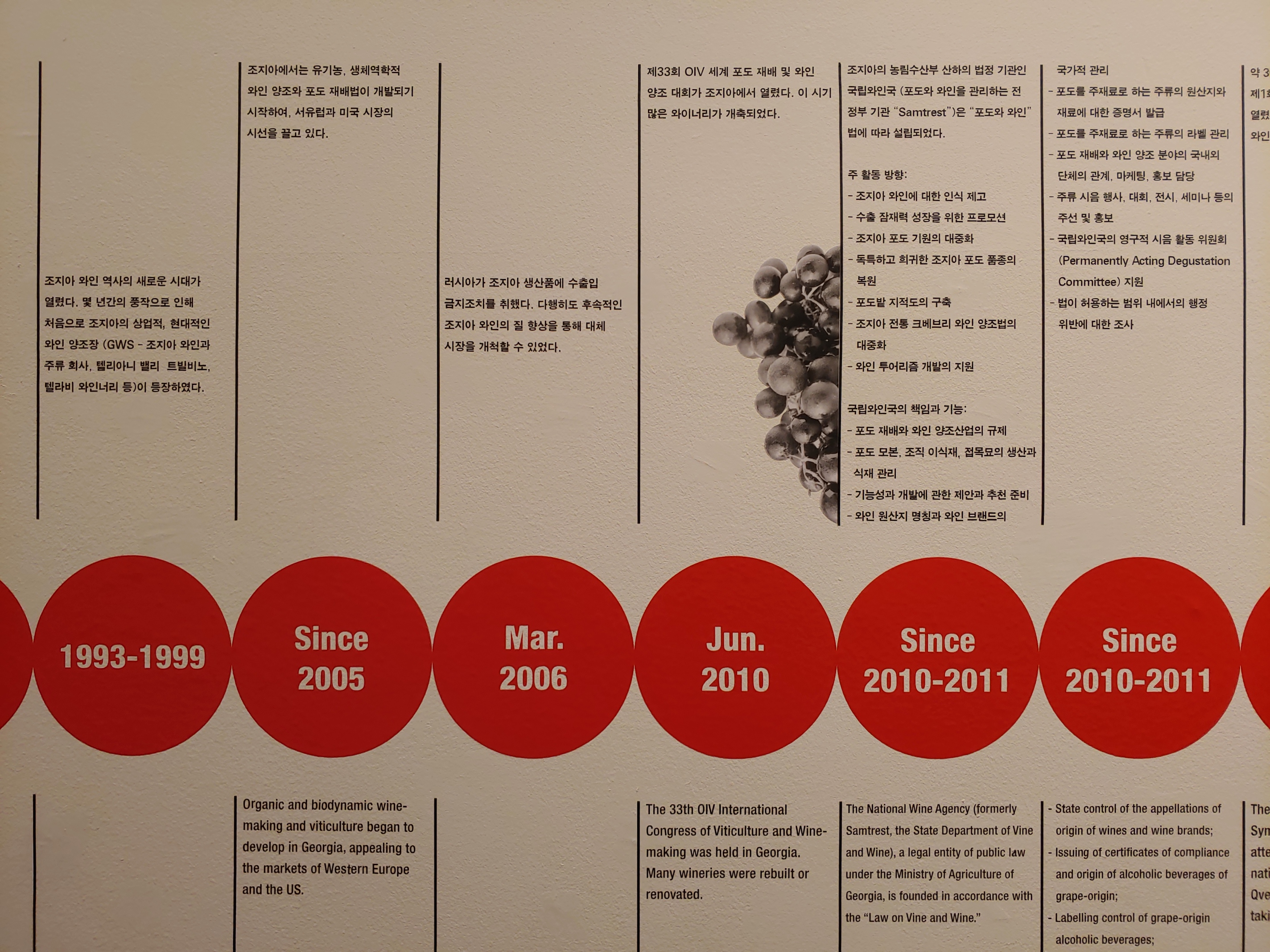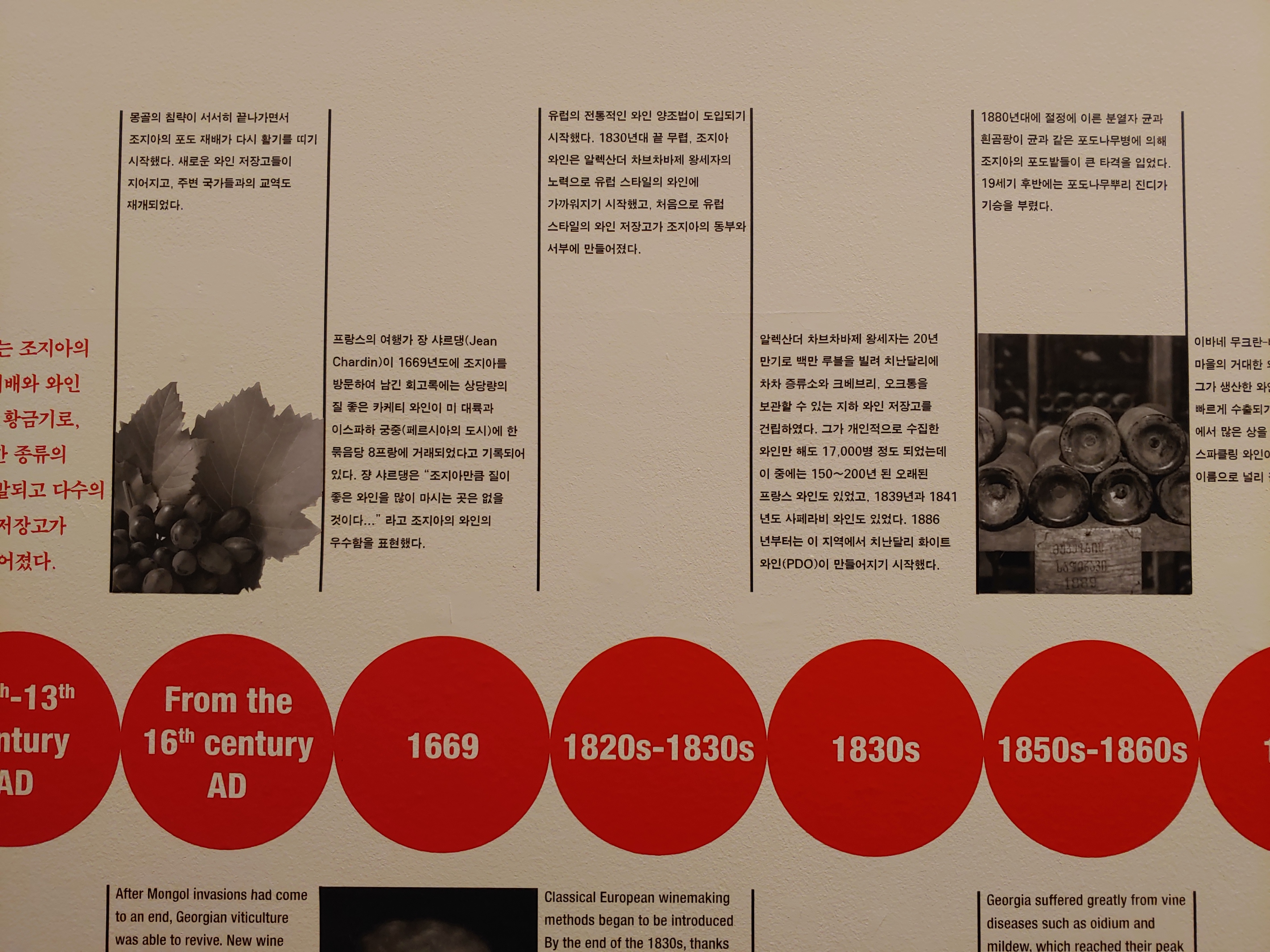 입구에는 조지아 와인 연대기가 붙어있다. 그 시작은 기원전 6세기. 자그마치 8천 년 전이니 어마어마하다.